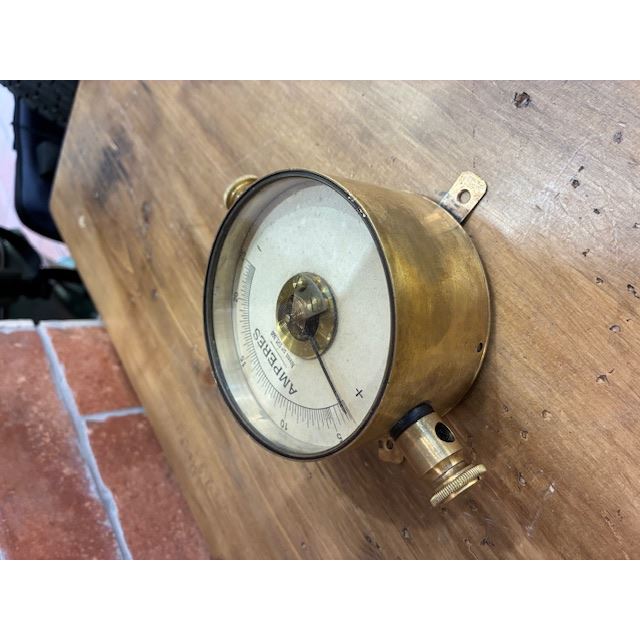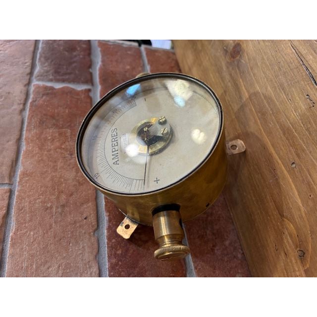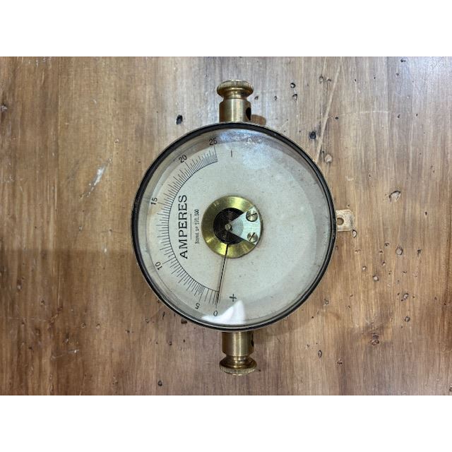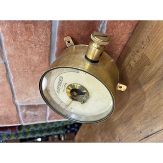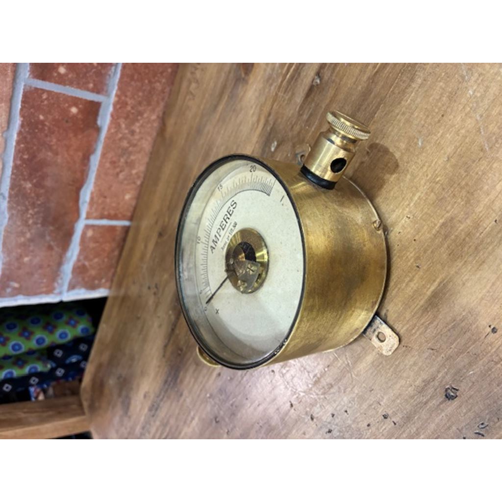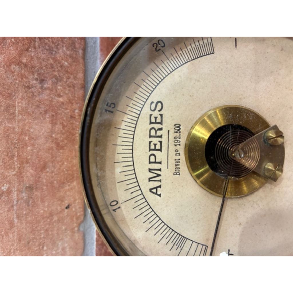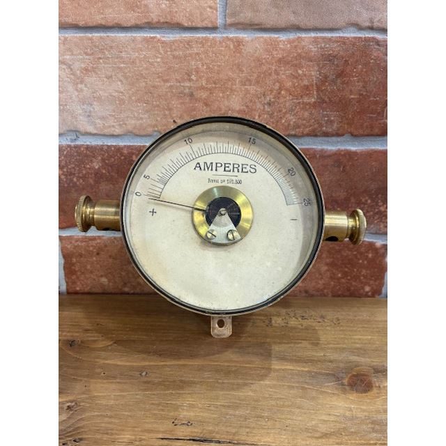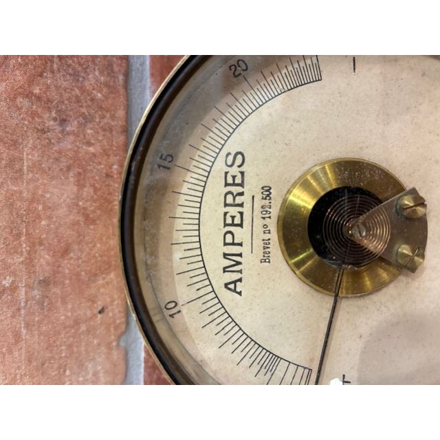 Early 20th century analogue ammeter, made of solid brass with a natural aged finish. Its sober and functional design features a scale graduated up to 25 amps, with a patent mark (‘Breveté nº 192.500’) attesting to its authenticity and historical value.