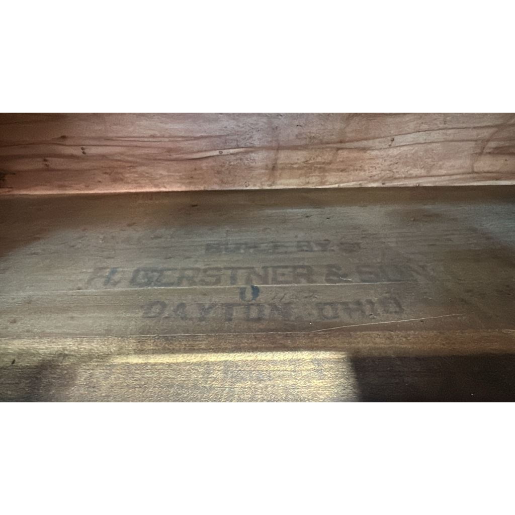 It consists of eleven drawers with a wooden structure and aluminum bottom lined with felt, the central drawer specially designed for the machinist's manual.