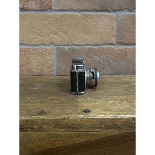 This charming Colly miniature camera is a testament to mid-20th-century photographic ingenuity. Crafted in chromed metal with a black synthetic leather wrap, it belongs to the "Hit-type" family, famous for being the most popular functional toy cameras of the era. Despite its diminutive size, it features a working shutter, a direct viewfinder, and a fixed lens. It includes its original brown leather case embossed with "Camera," boasting an authentic patina that enhances its historical and decorative value. An ideal collector's piece for lovers of vintage photography or micro-mechanics.