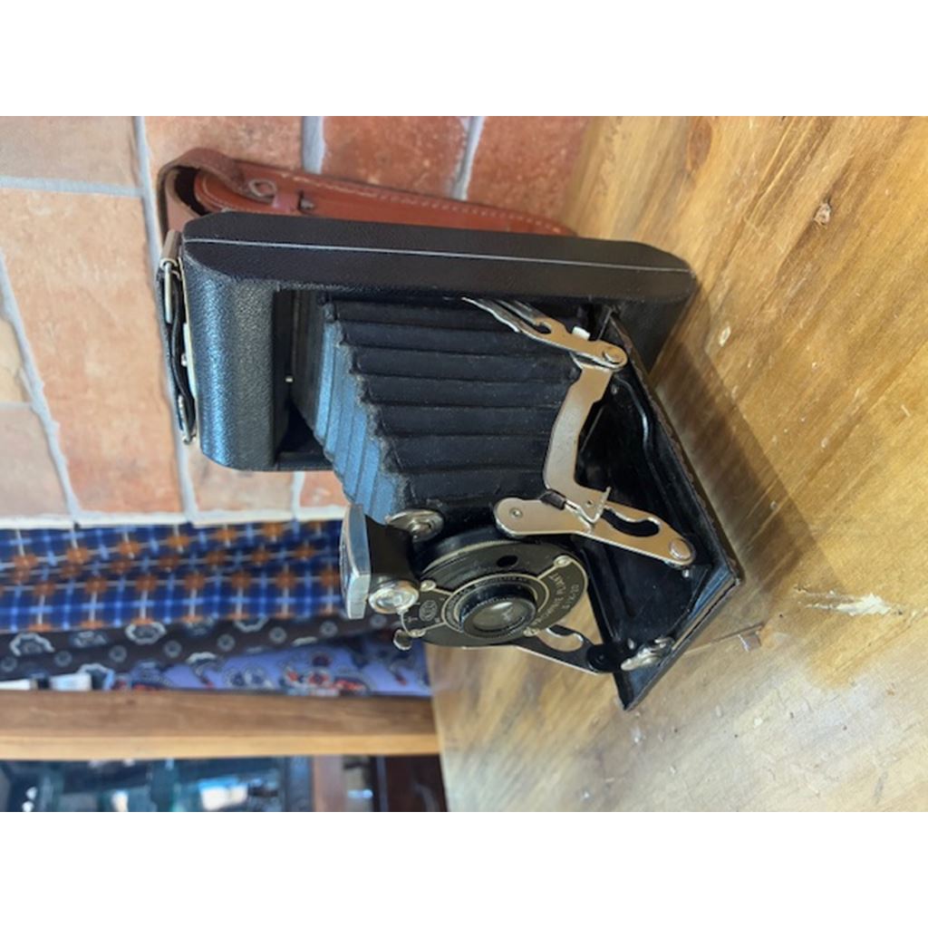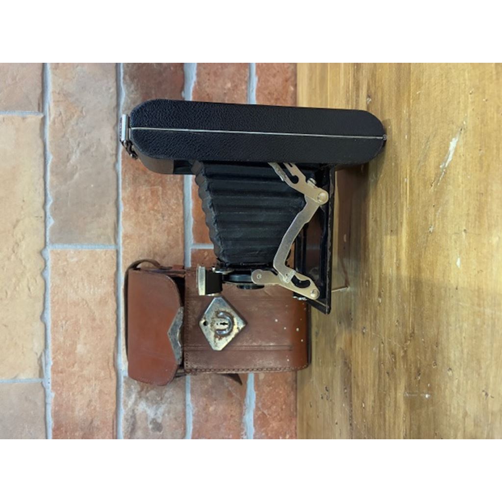 A classic piece that reflects the essence of 20th-century analogue photography. Made with a sturdy metal body and folding bellows, it stands out for its compact and functional design, characteristic of portable cameras of the time.