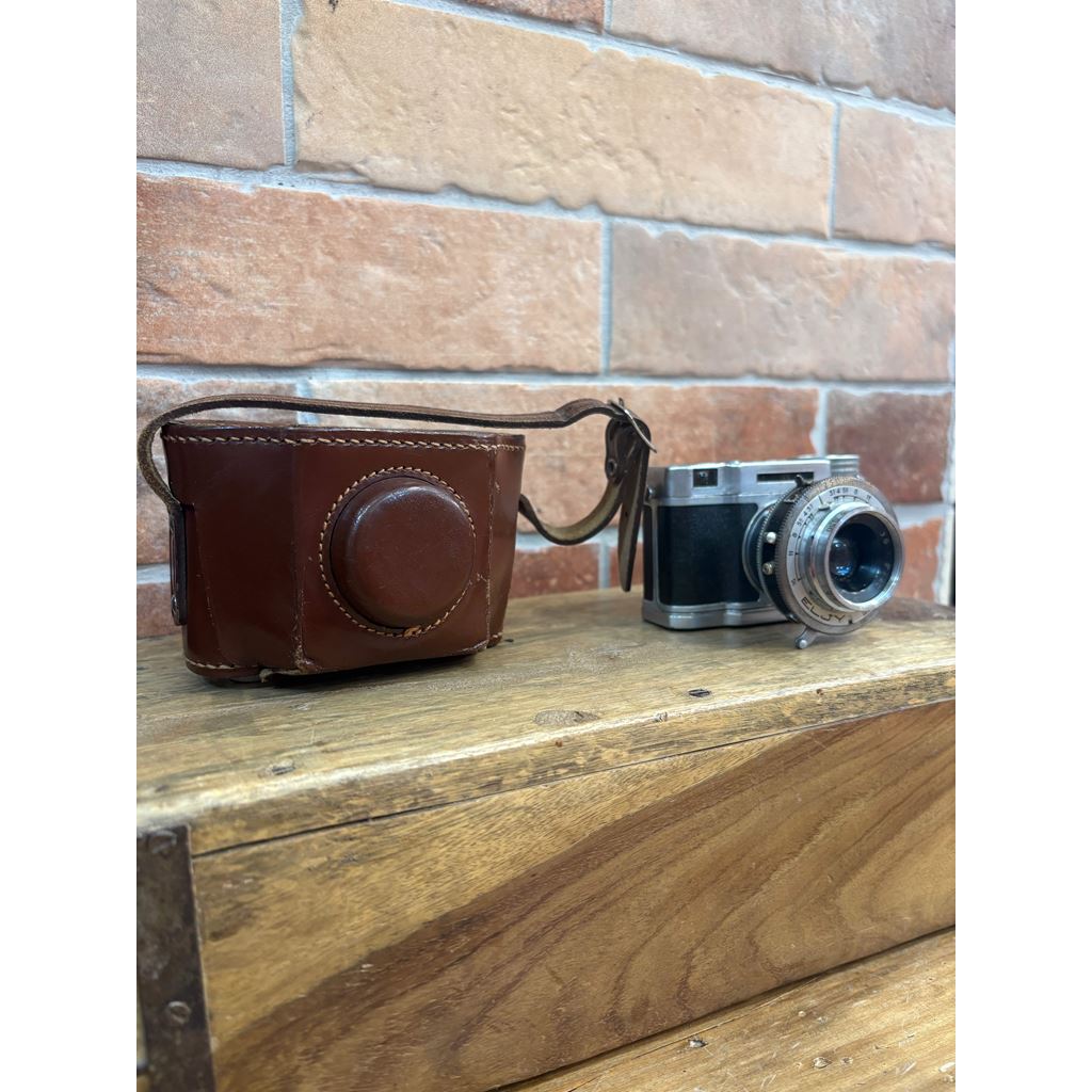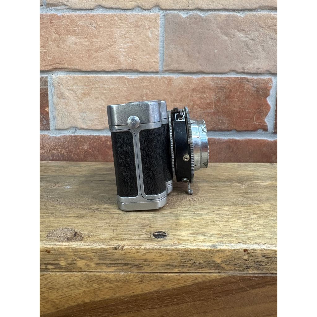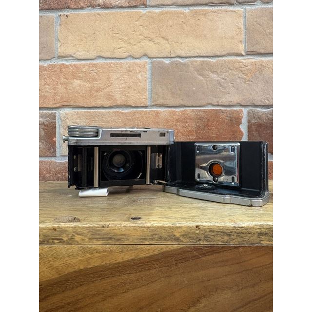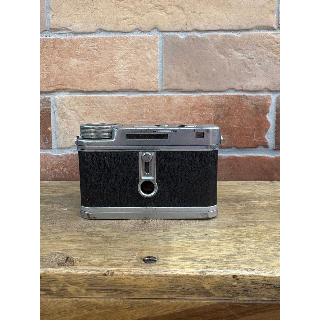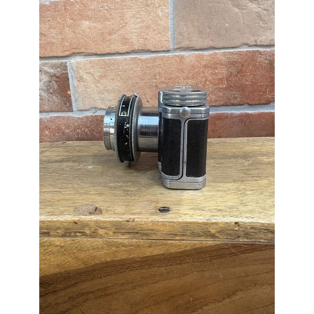 The Lumière Eljy Club (1951) is an iconic French subminiature camera made of chromed aluminum. It features a collapsible Lypar f/3.5 40mm lens, allowing it to be reduced to a minimal size for easy transport, while offering the exceptional mechanical build typical of the Lumière brand. This piece is famous for its ingenious weather-based exposure calculator on the top plate. Its unique design produces 24x36mm negatives using unperforated 35mm film, achieving a much more compact size than the Leica cameras of its time.