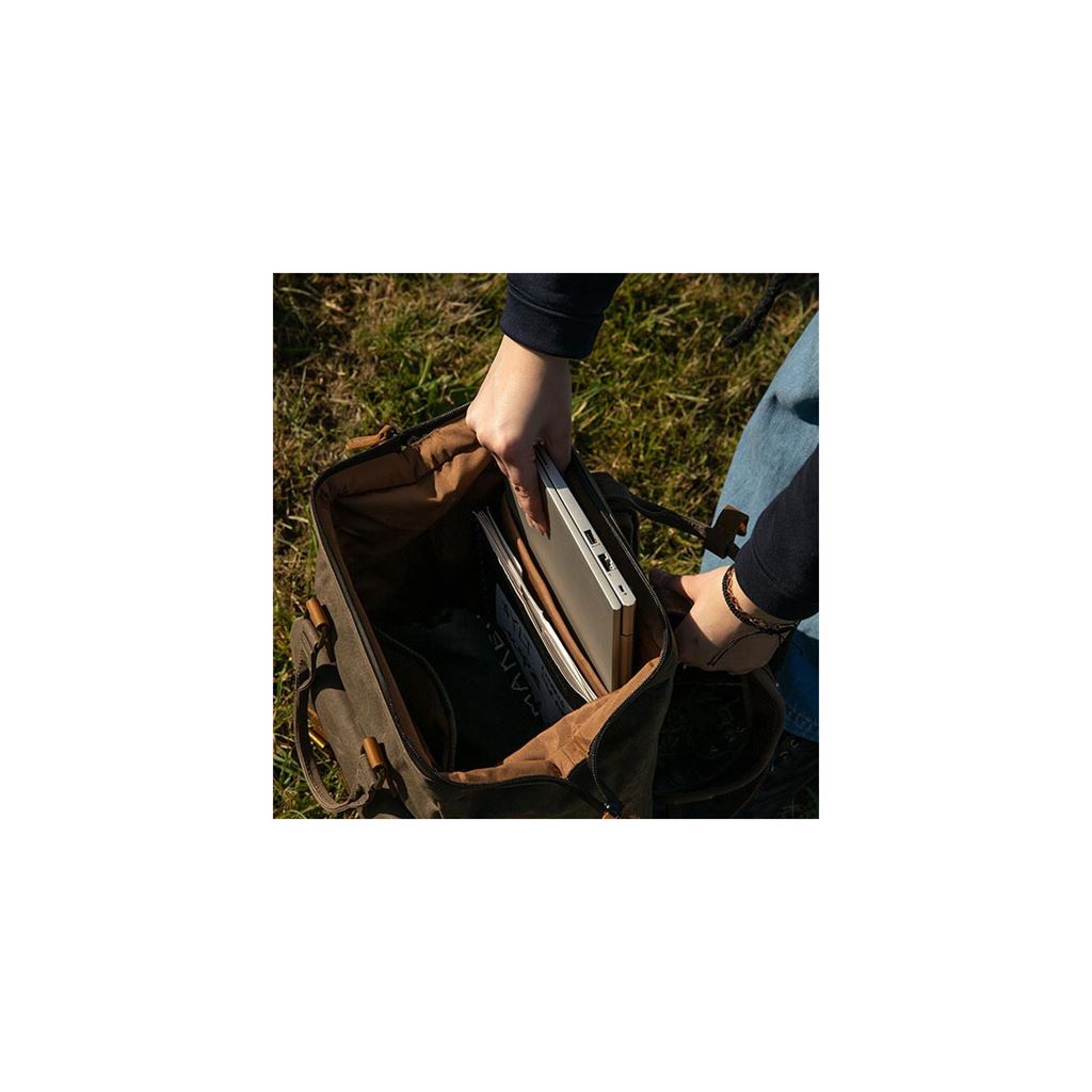Fabricada en materiales duraderos y ligeros, ofrece un interior bien organizado con compartimento acolchado para portátil, bolsillos interiores para accesorios y un espacio principal amplio para documentos, ropa o artículos esenciales. El exterior incorpora bolsillos de acceso rápido y detalles sobrios que aportan un acabado moderno.