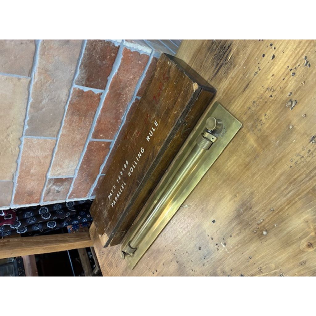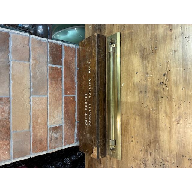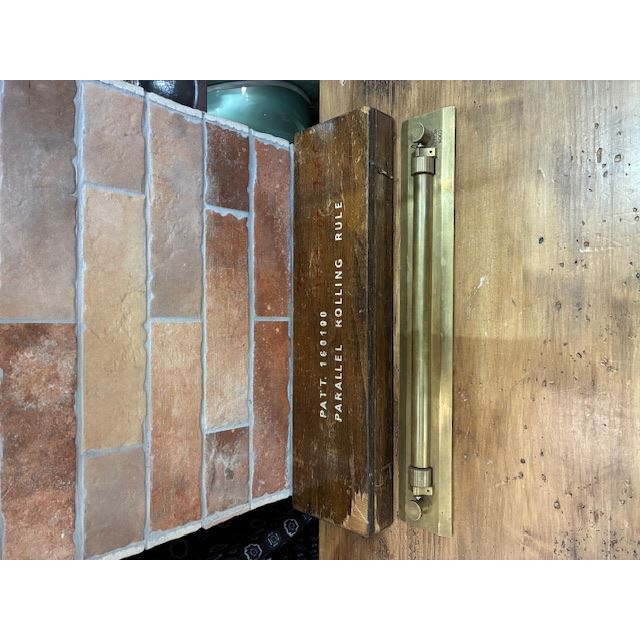 Antigua regla de paralela de rodillos, una pieza clásica utilizada tradicionalmente en náutica, ingeniería y dibujo técnico. Fabricada en latón macizo, destaca por su precisión y durabilidad. Su mecanismo de rodillos permite trazar líneas perfectamente paralelas con suavidad y exactitud.