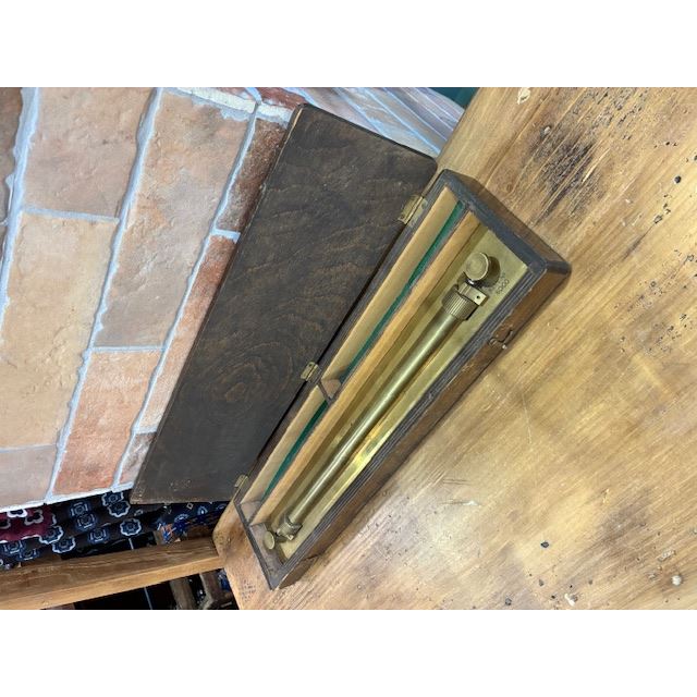 La pieza va acompañada de su estuche original en madera. Tanto en la regla como en la caja consta el numero de patente. Patt.160100.