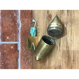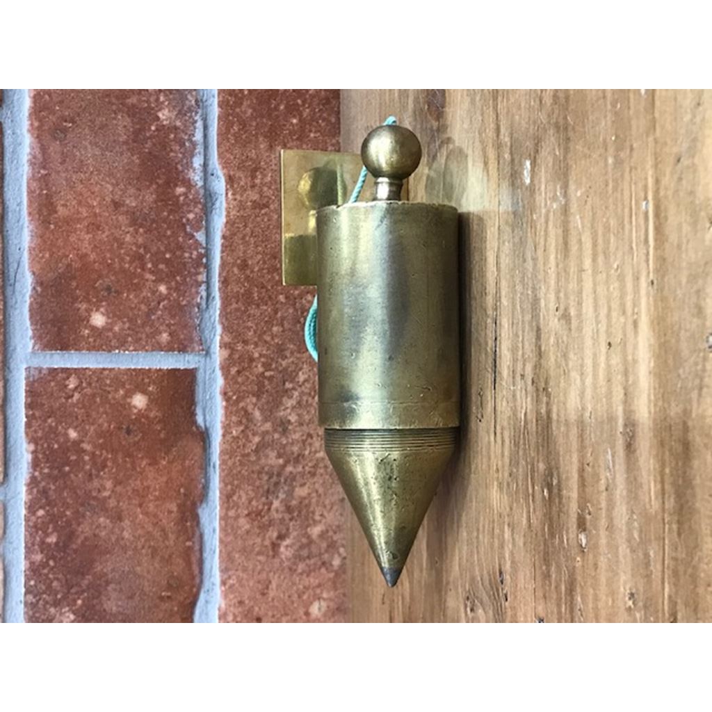 Plomada antigua de latón, pieza atemporal que conjuga historia y oficio. Su aspecto revela su antigüedad, desafiando el paso del tiempo. Ideal como pieza decorativa o recordatorio de la precisión y dedicación del oficio.