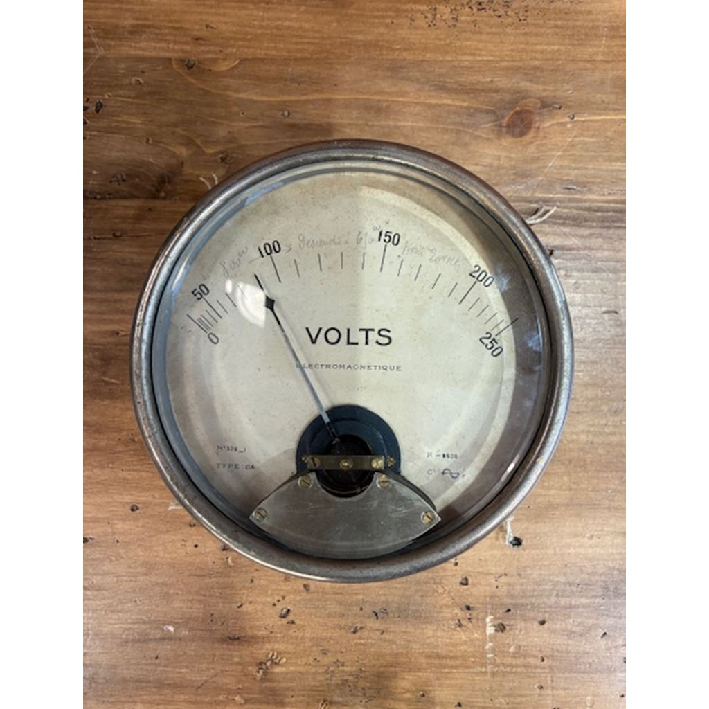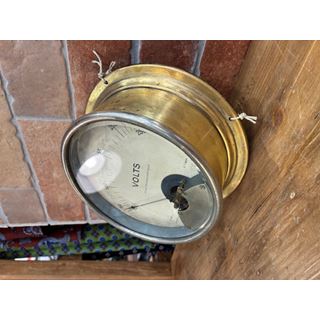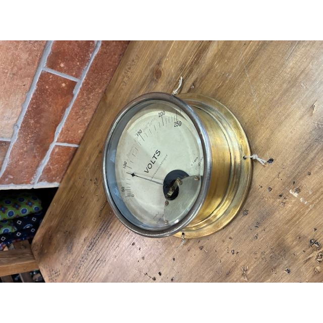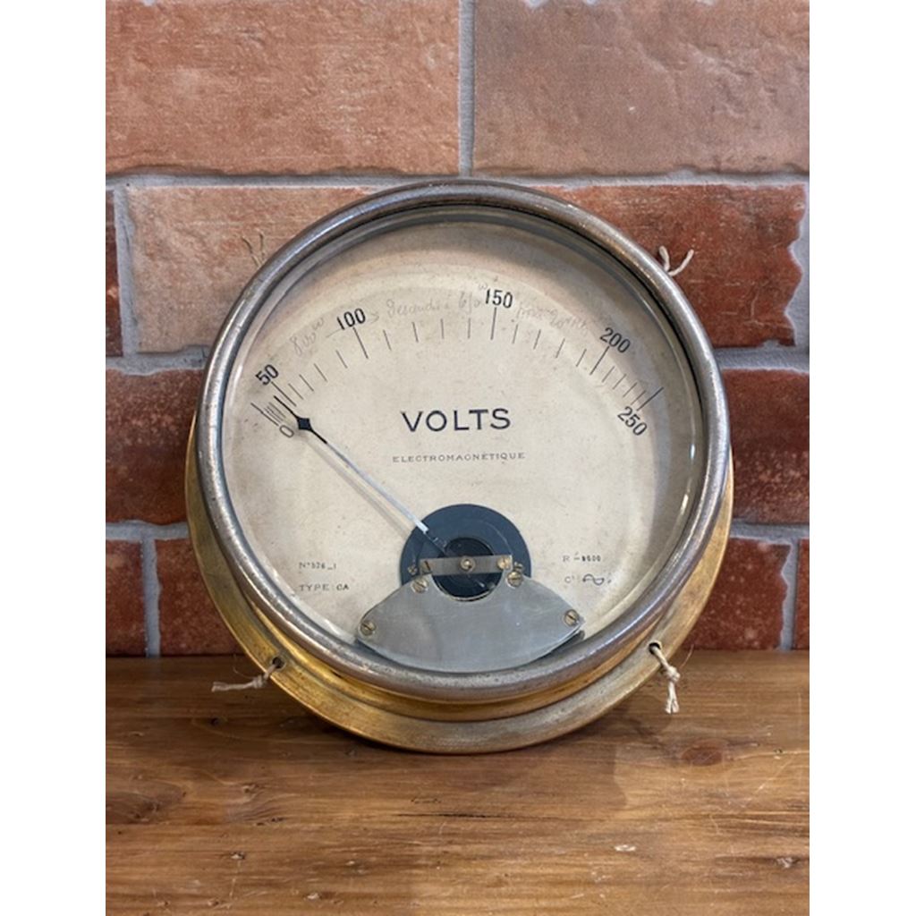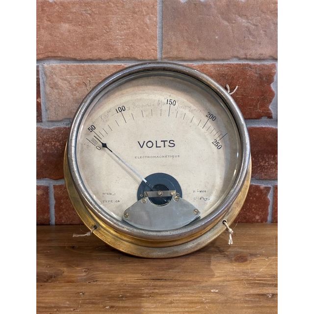 Antiguo voltímetro electromagnético, una auténtica joya de principios del siglo XX. Con su robusta carcasa de latón, este medidor no solo es funcional, sino también un elemento decorativo único.