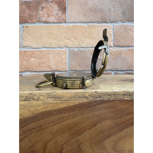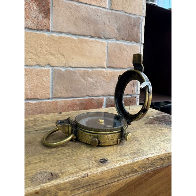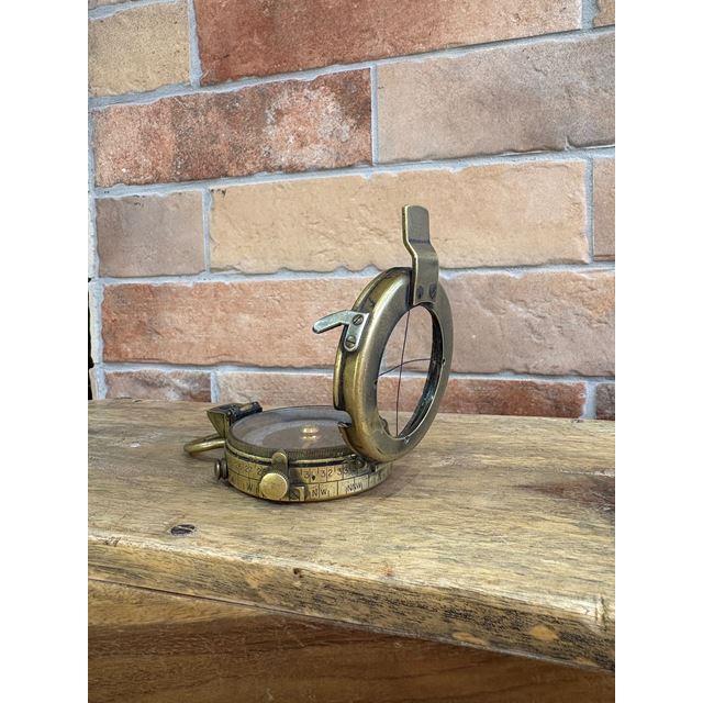 Cette exceptionnelle boussole prismatique en laiton est une pièce historique de haute précision fabriquée en 1918, coïncidant avec la fin de la Première Guerre Mondiale. Le modèle Verner’s Pattern VIII était le standard d'excellence des officiers britanniques, conçu pour offrir des lectures précises dans les conditions les plus extrêmes du front. Un objet de collection militaire avec une charge historique inégalée, idéal pour apporter un air de distinction et d'aventure à tout bureau ou bibliothèque de style classique.