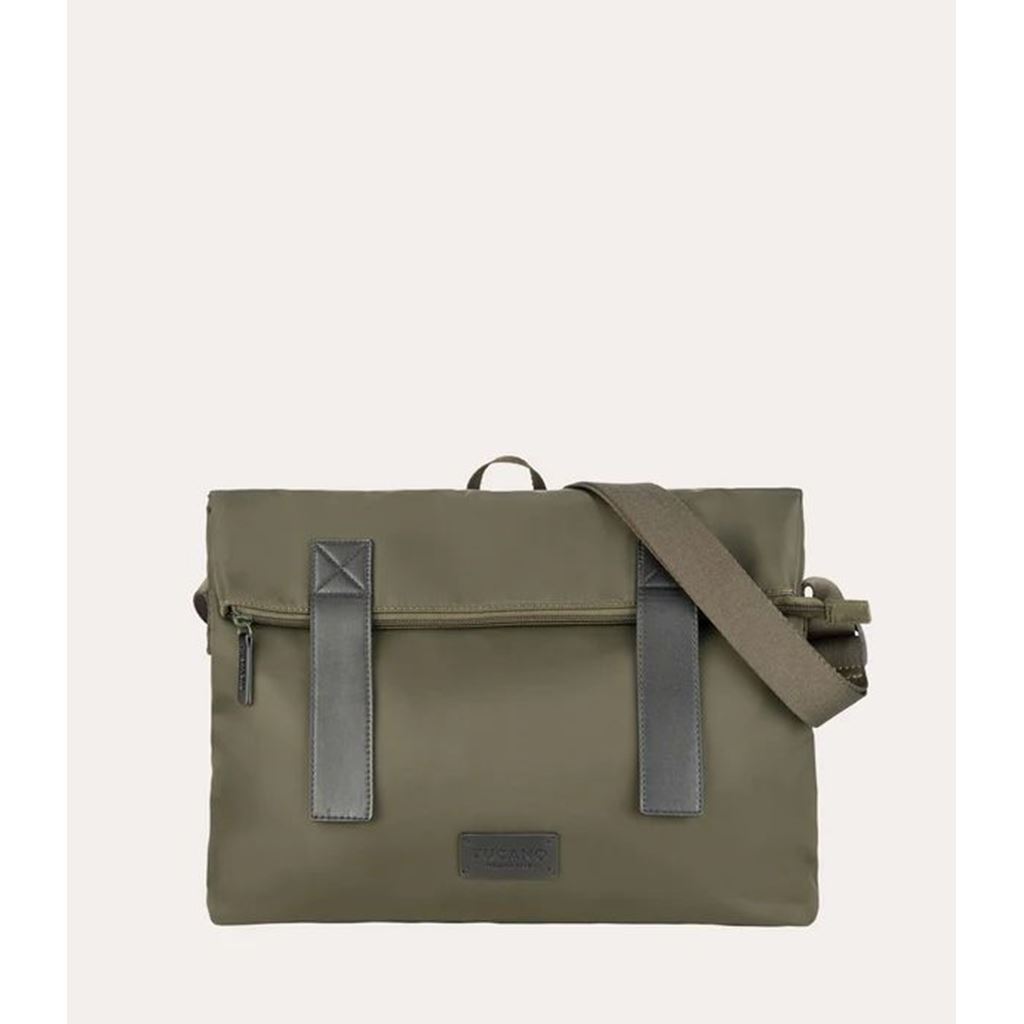 Sac bandoulière Fold en nylon recyclé avec détails en cuir – pour ordinateur portable jusqu’à 14"