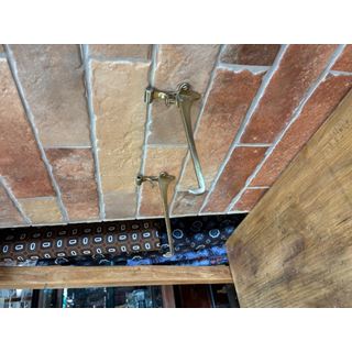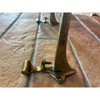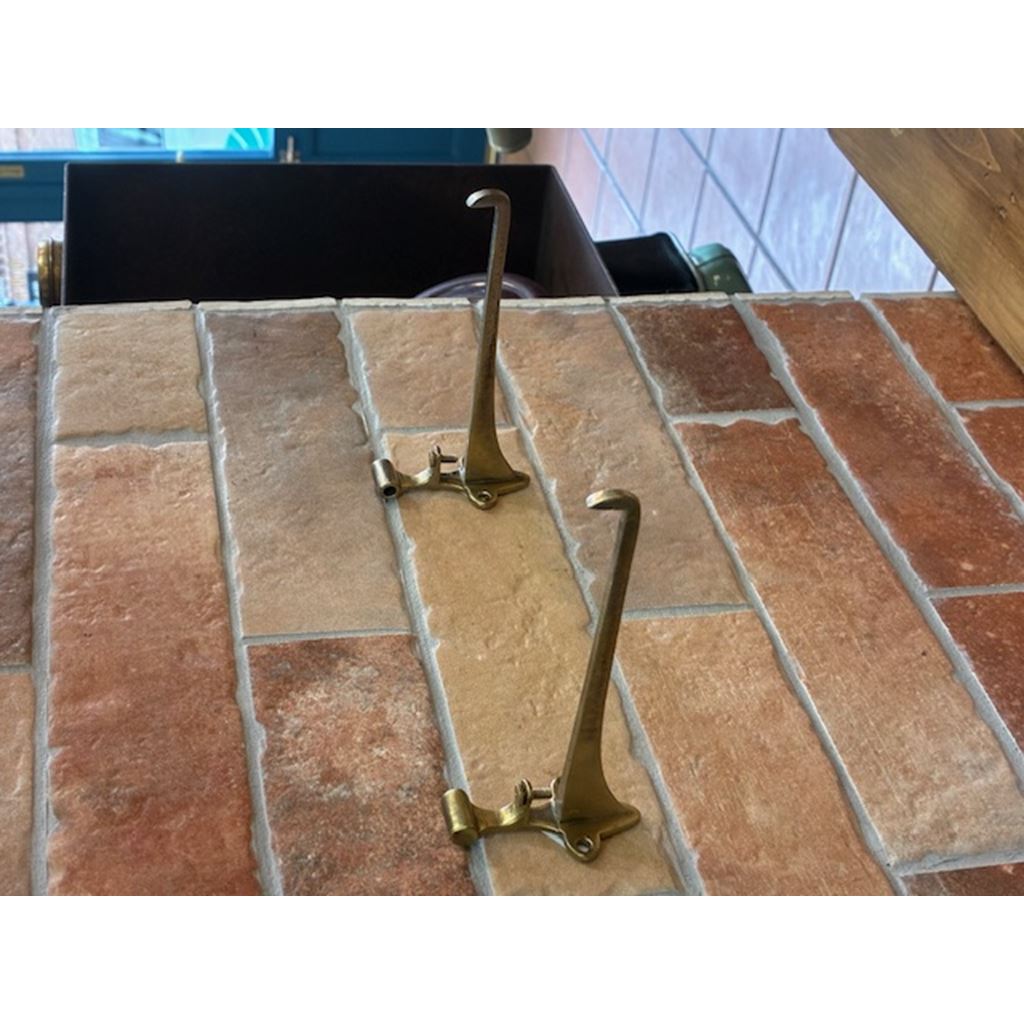 Jeu de deux consoles en laiton antique. Ces pièces au design exquis offrent à la fois fonctionnalité et style. Ajoutez une touche de classe à votre espace avec ces objets de décoration vintage uniques.