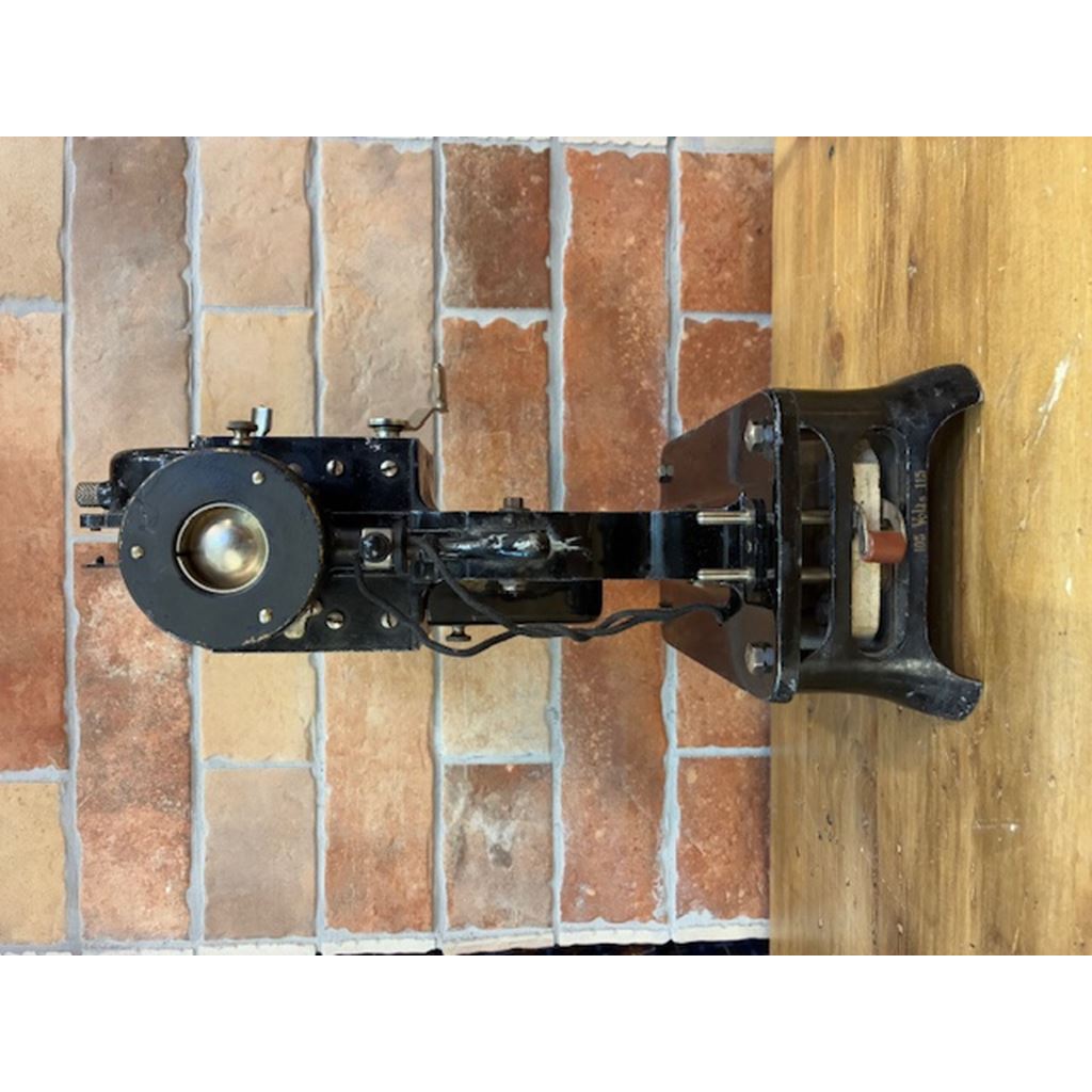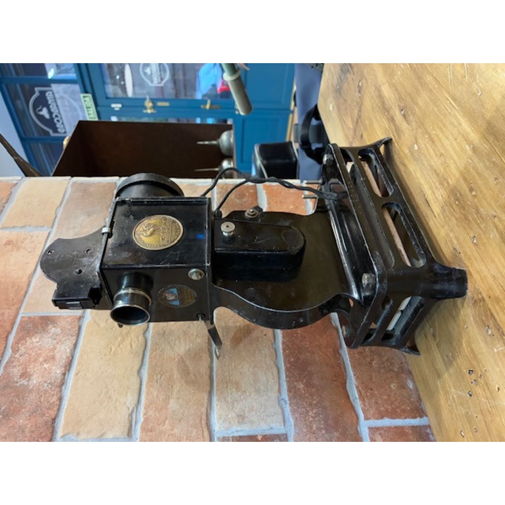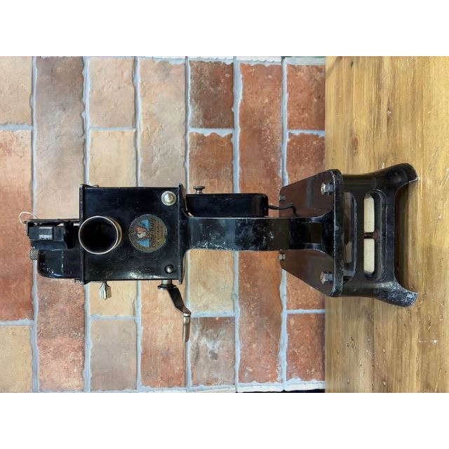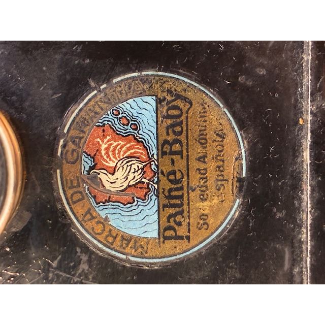 Société Pathé Frères est le nom donné aux entreprises créées par les frères Pathé et dédiées à l'industrie cinématographique en France. Les frères Pathé ont contribué à populariser le cinéma grâce à des inventions telles que ce projecteur domestique. Le Pathé Baby, datant de 1922, est un projecteur de films 9,5 mm, le premier à usage exclusivement domestique. Il s'agit d'un appareil simple, robuste, facile à manipuler et abordable, qui est devenu très populaire dans les années 1920 et 1930. Le fonctionnement de l'appareil se résume en trois étapes simples : insertion du film, allumage de l'ampoule, mise au point de la projection et rotation de la manivelle. Le Pathé Baby permet de projeter des films imprimés, contenus dans des bobines métalliques de petit ou grand format, c'est-à-dire d'environ 10 et 20 mètres de long. Par la suite, un petit moteur électrique a été ajouté pour supprimer la tâche fastidieuse de tourner la manivelle à la main ; en le complétant avec le dispositif « Super Baby », il est possible d'effectuer des projections d'environ 20 minutes consécutives, en utilisant des films d'environ 100 mètres de long.