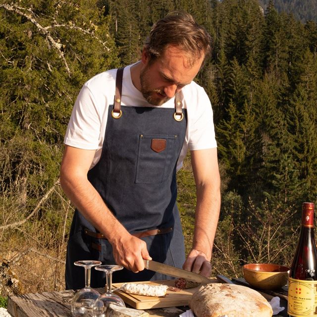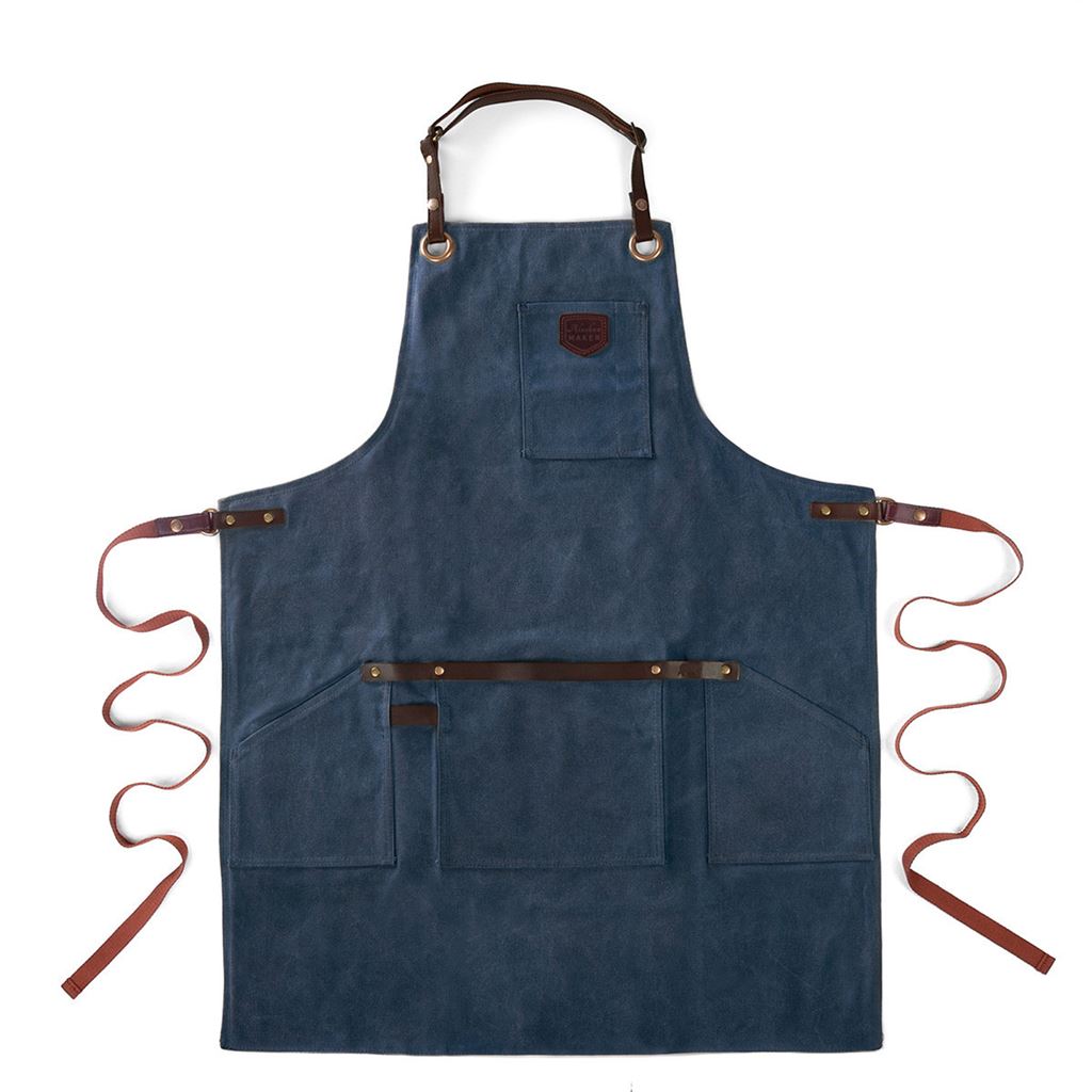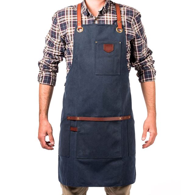 La base du tablier est réalisée en toile de coton épaisse 100 % cirée, capable de repousser l’eau et de résister aux taches, éclaboussures et au rythme de toute cuisine ou barbecue. Solide, pratique et sans artifices : lignes épurées, finitions en cuir et design moderne sans volants, imprimés ni messages. Sobre, élégant et irrésistible.