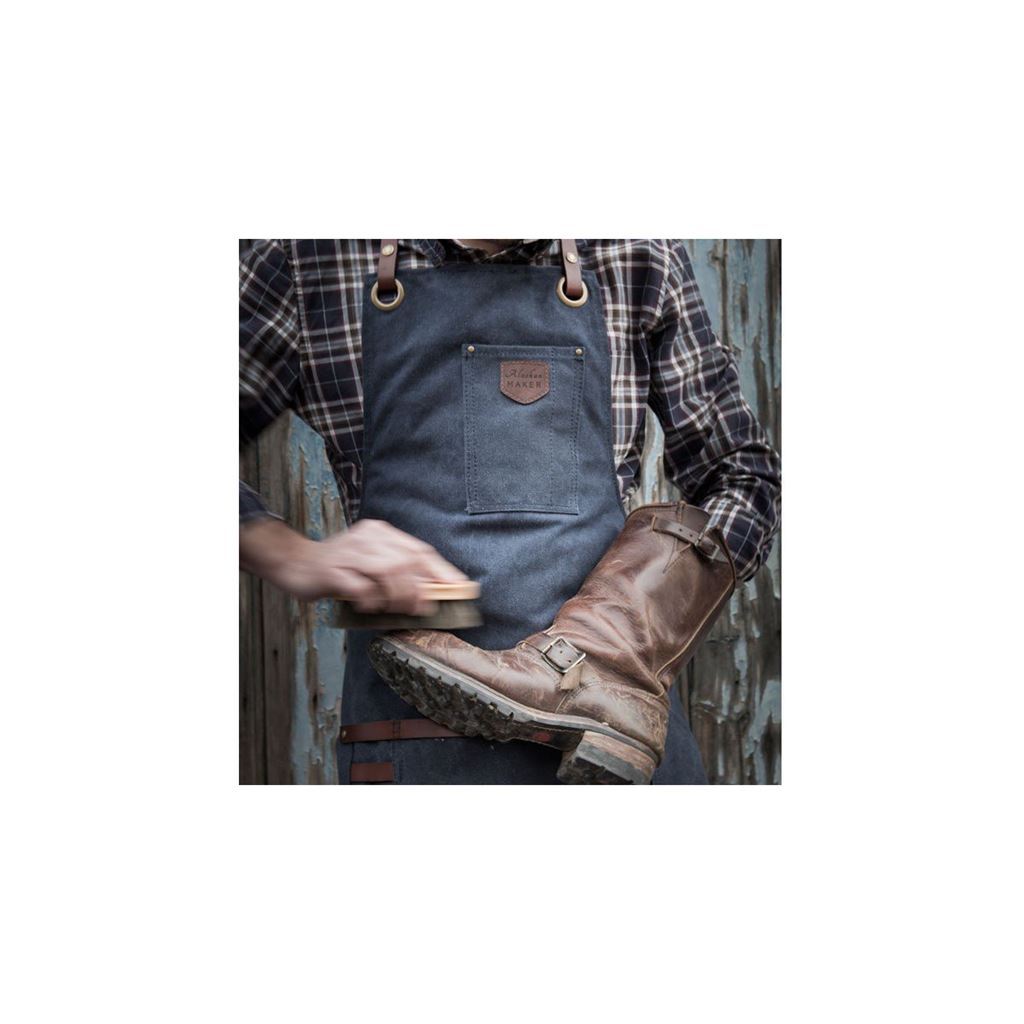 2/ Portez fièrement votre tablier Nº 547 en cuir pleine fleur et toile cirée.