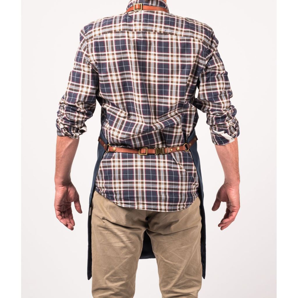 Ce tablier a été conçu pour ceux qui recherchent style, résistance et authenticité en une seule pièce. Son caractère commence par les matériaux : des sangles et une ceinture en cuir pleine fleur, la partie la plus noble et durable du cuir. Doux au toucher, résistant à la chaleur, aux chocs et à un usage intensif, il est de plus tanné de manière végétale, un procédé naturel à base de tanins issus de plantes, plus durable, robuste et fait pour durer des années.