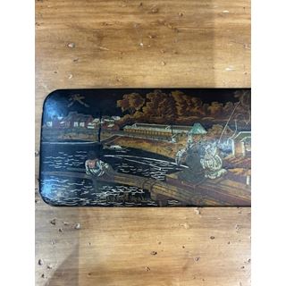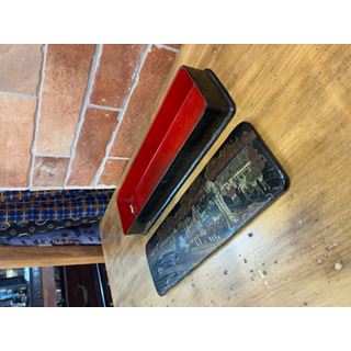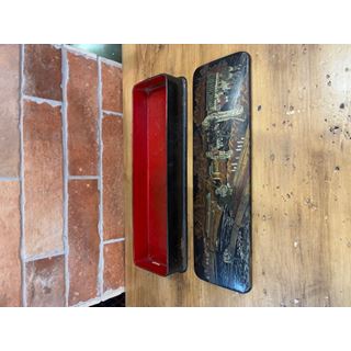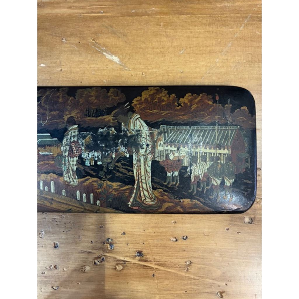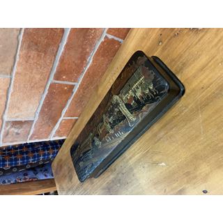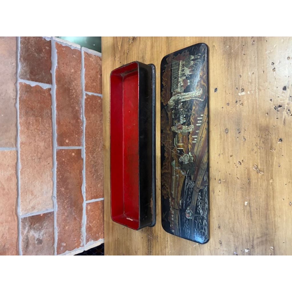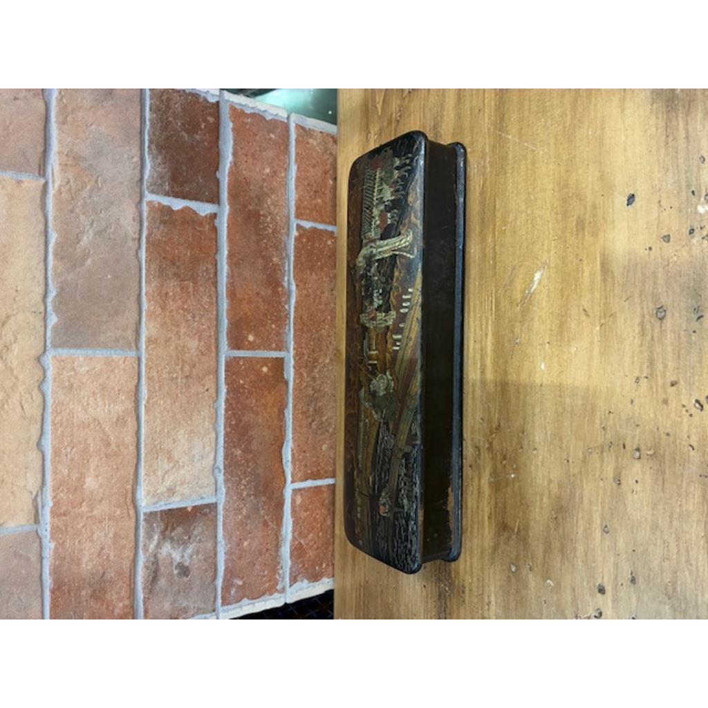 Antico astuccio portamatite del XIX secolo, realizzato in cartapesta ebanizzata.