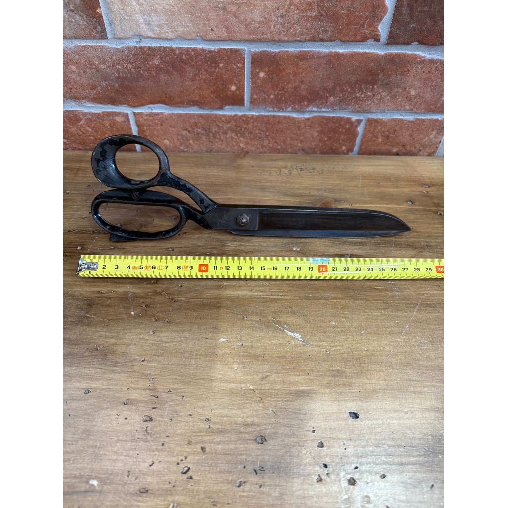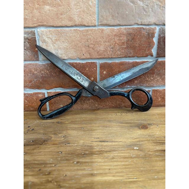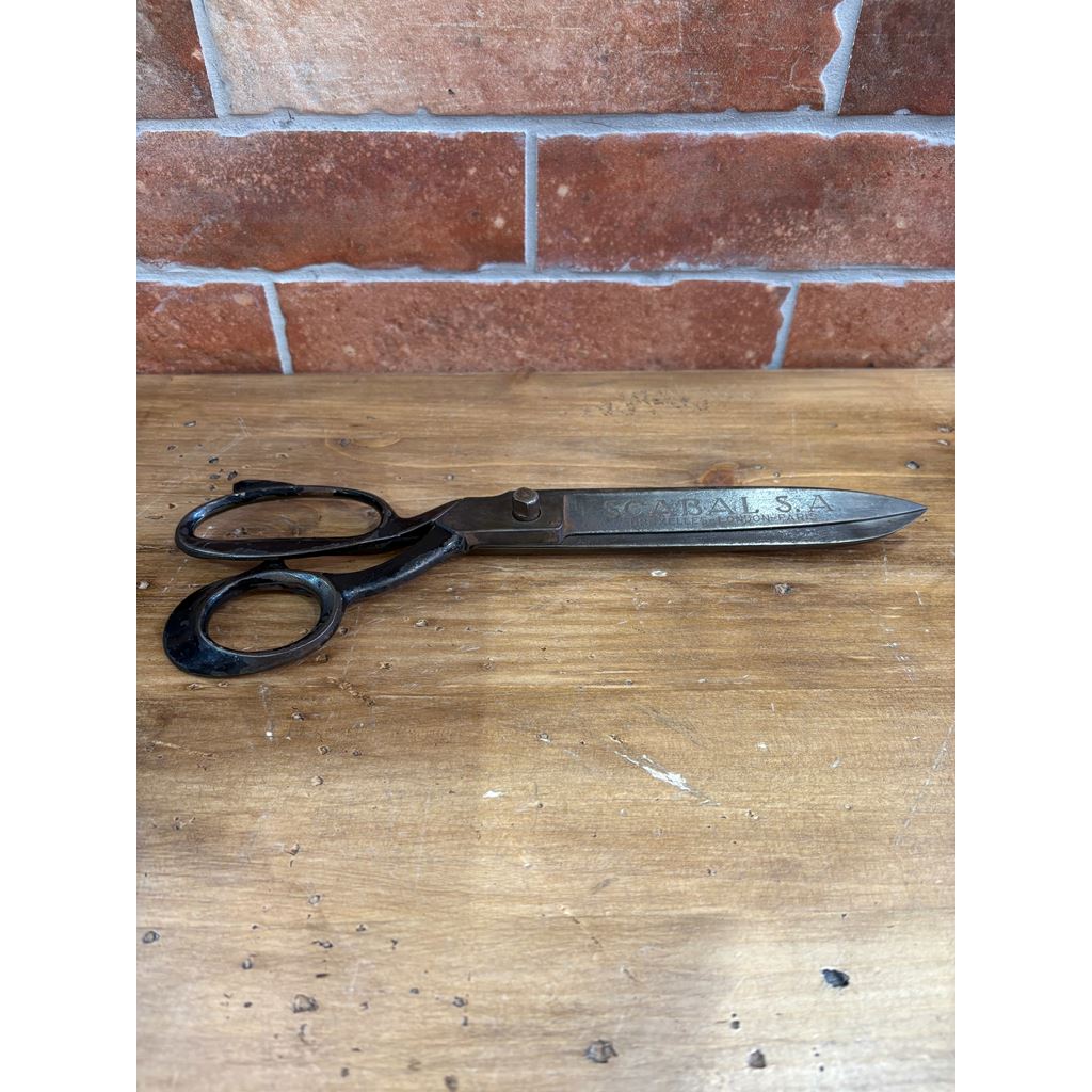 Queste eccezionali forbici da sarto della prestigiosa ditta Scabal S.A. sono un pezzo da collezione che unisce l'ingegneria di precisione di Bruxelles, Londra e Parigi. Realizzate in acciaio al carbonio forgiato con una finitura brunita che conserva la sua patina originale, presentano l'iconico design con impugnatura inclinata (offset) per consentire tagli lunghi e precisi sul tavolo da lavoro senza sollevare il tessuto. L'incisione laterale del marchio non solo ne garantisce l'autenticità, ma evoca l'epoca d'oro dell'alta sartoria europea. Ideali sia per i collezionisti di antiquariato industriale che per i professionisti che cercano uno strumento con peso, carattere e una durata senza pari.