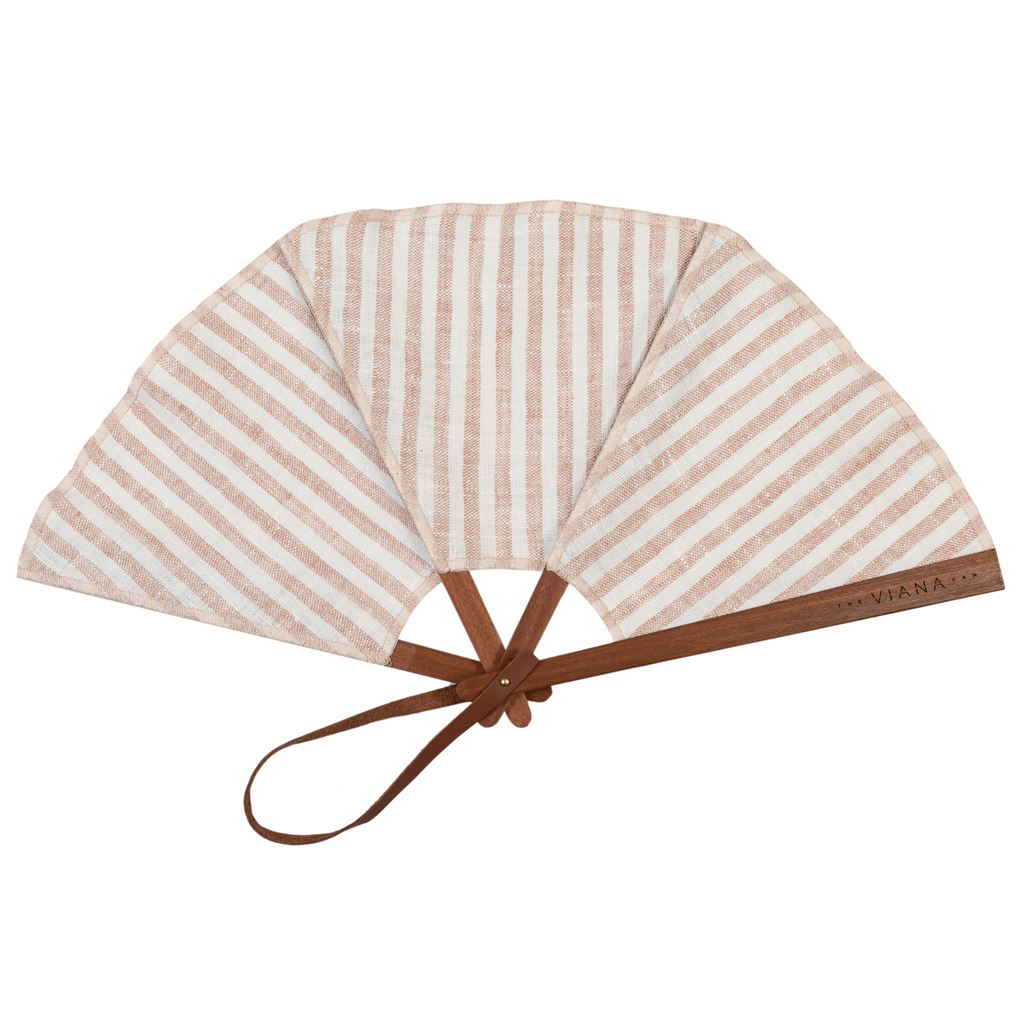 Freschezza, stile e design fusi in un ventaglio unico e di grande personalità. I suoi meravigliosi tessuti di lino in splendide tinte unite e stampe si combinano perfettamente per creare l'accessorio ideale.